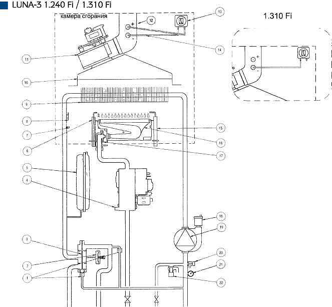 точка положительного давления (для модели 1.310 Fi точка положительного давления должна быть закрыта) пневмореле - датчик тяги |
