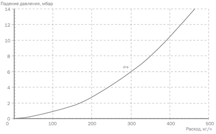 Диаграмма падения давления трубы PE-MDXc диаметром 16 мм