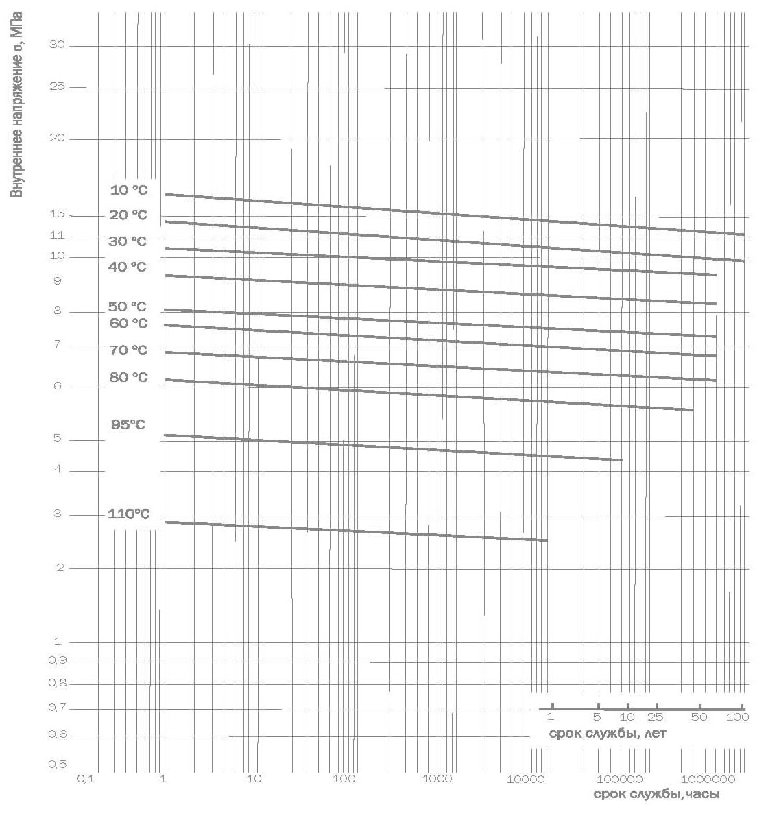 Эталонные кривые длительной прочности многослойных труб из PE-MDXc.