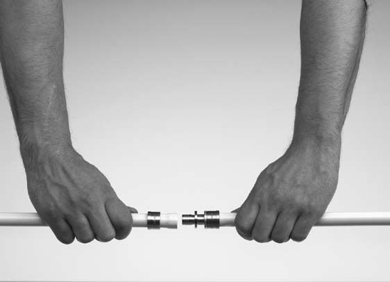 Трубу TECEflex надвинуть на фитинг до последнего зубца. Задвигание до упора не является необходимым.