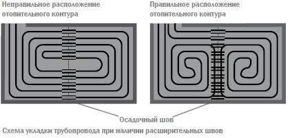 Трубопроводы, проходящие через область расширительных швов следует укладывать в защитной гофрированной трубе (длиной 300 мм).