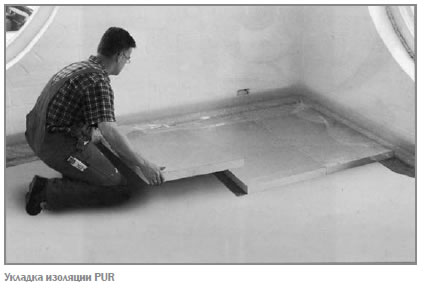 При прокладке отопления пола в зоне земли, внешнего воздуха или над необогреваемыми помещениями рулонной изоляции в качестве изолирующего материала недостаточно и ее необходимо дополнить изоляцией PUR.