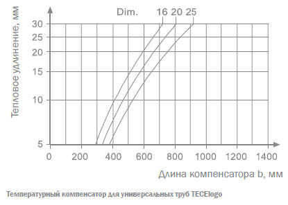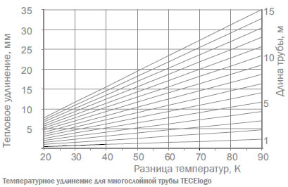 Также увеличение длины трубопроводов можно получить из нижеприведенной диаграммы: