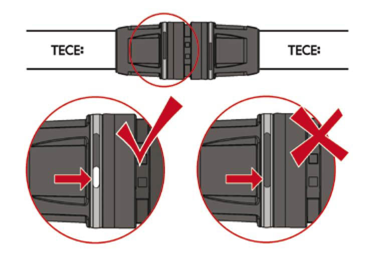 Проверить, не загрязнен ли фитинг, если требуется, то почистить его или заменить. После этого просто вдвинуть трубу TECElogo в фитинг до упора.