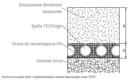 б) Конструкция напольного отопления с применением полистирольной изоляции и монтажных якорных клипс TECE.