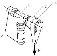 пропорциональности клапана Хр. 1 – термостатический элемент, 2 – корпус термостатического клапана, 3 – шток, 4