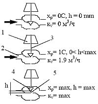 пропускной способности кv с высотой поднятия затвора клапана h. Рис. 4 Зависимость пропускной способности кv и расчетной зоны